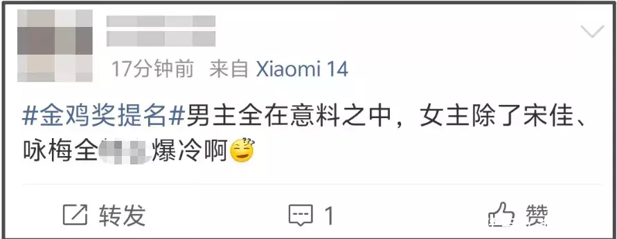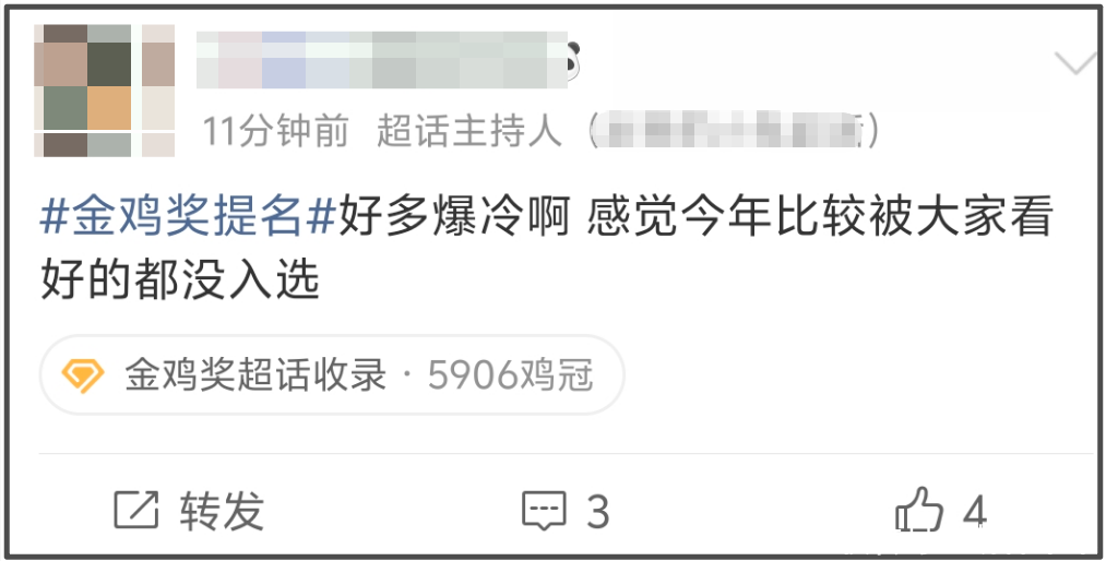 当然了,金鸡奖对比百花奖更主打专业性,电影票房并非主要考量元素,给予冷门电影演员奖项,也算是一种鼓励,只不过在网友看来,之所以觉得金鸡奖大爆冷,不光是提名了新人或者不知名演员,而是因为卡热门。