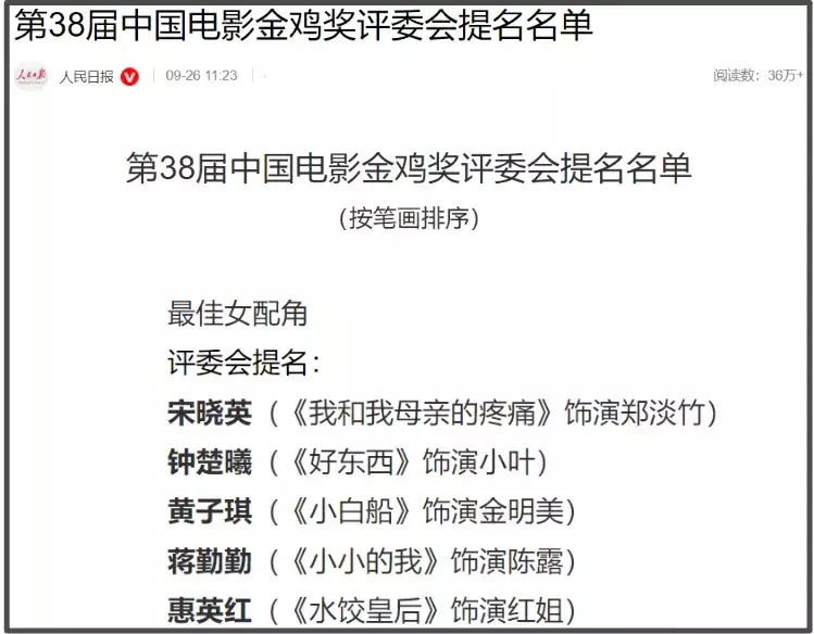 第38届中国电影金鸡奖提名名单公布了!四大演员奖项堪称大爆冷,话不多说,先来看具体有哪些人入围了吧。